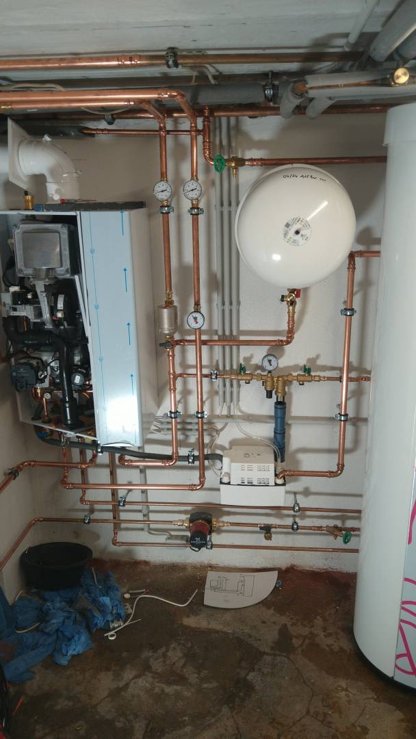 Einbau einer effizienten Gasbrennwertheizung im Bestand.